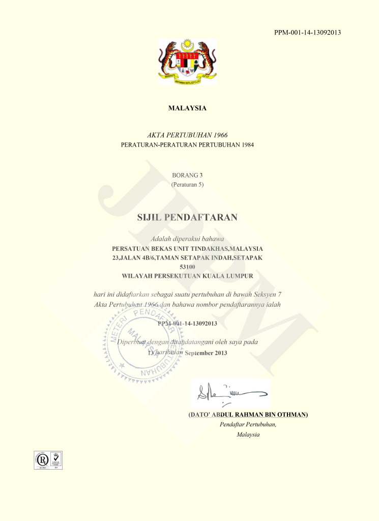 PORTAL RASMI PERSATUAN BEKAS TINDAKHAS MALAYSIA Utama Tentang Kami Organisasi Aktiviti Pahlawan Negara Rakan Strategik Hubungi kami PENDAFTARAN PERTUBUHAN BARISAN KEPIMPINAN PBUTKM